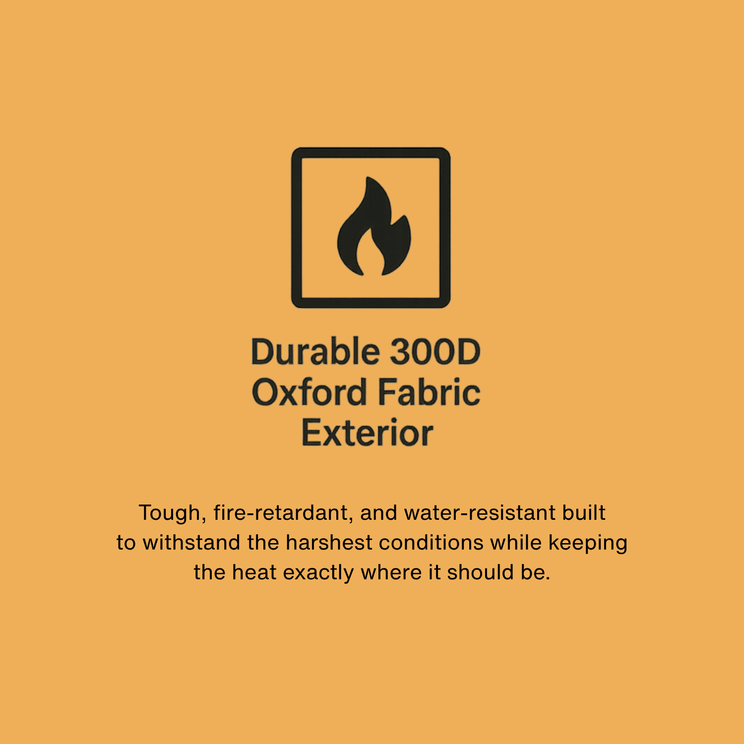 - Outer Material consists of an Oxford 300D outer layer, Insulation and an Oxford 300D inner layer.